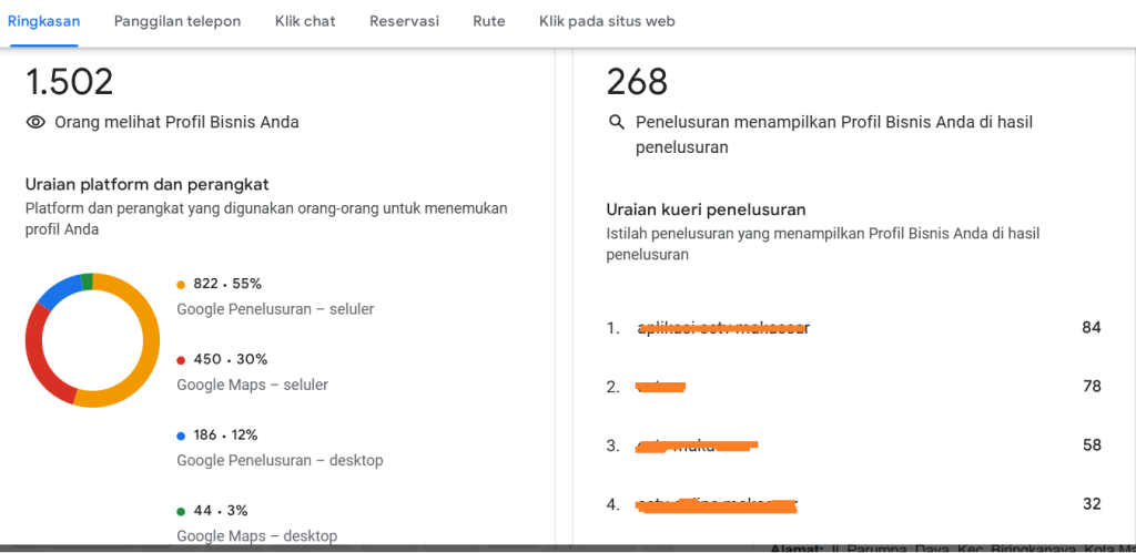Laporan pengunjung pada lokal bisnis sangat di perlukan terutama berkaitan dengan keyword pencarian orang pada bisnis kita, karena jika tidak relevan akan mengurangi performa lokal bisnis di google maps