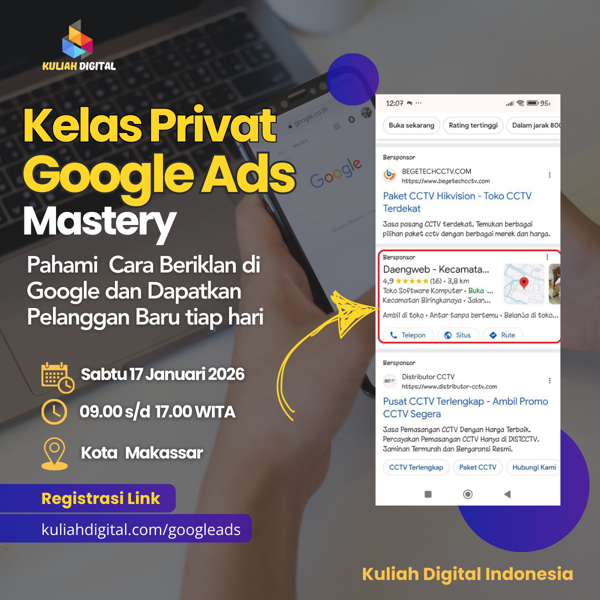 Kuliah Digital bekerja sama dengan Komunitas Google Ads yang mendorong teman teman pelaku usaha agar bisa bersinergi dalam mengembangkan usaha atau bisnis yang sedang di jalankan dengan digital marketing melalui platform Google Ads.